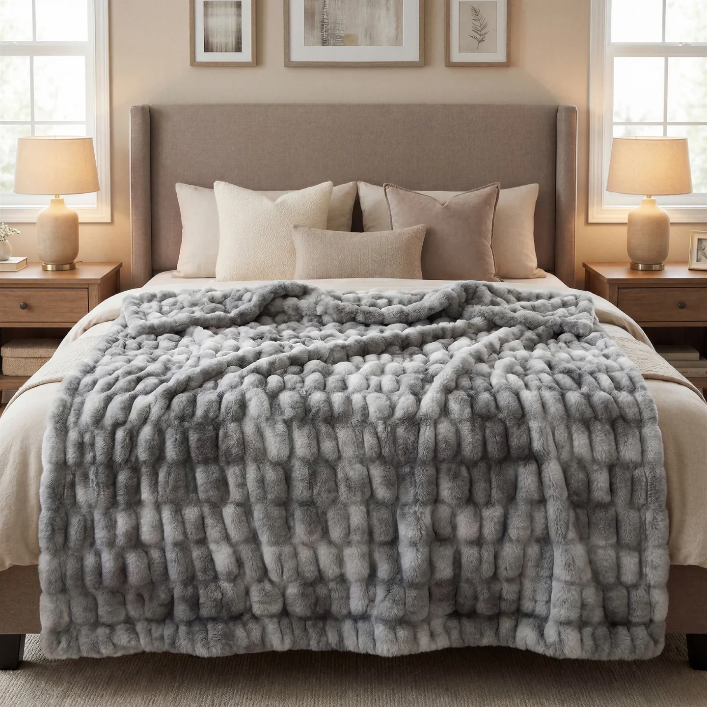 Crafted from plush, cloud-like faux fur fibers, this blanket feels irresistibly soft. Its double-sided, breathable design keeps you warm without overheating, so every snuggle is perfectly cozy, no matter the season. You’ll reach for it again and again, because a blanket this soft and thoughtfully designed makes comfort truly addictive.Crafted from plush, cloud-like faux fur fibers, this blanket feels irresistibly soft. Its double-sided, breathable design keeps you warm without overheating, so every snuggle is perfectly cozy, no matter the season. You’ll reach for it again and again, because a blanket this soft and thoughtfully designed makes comfort truly addictive.